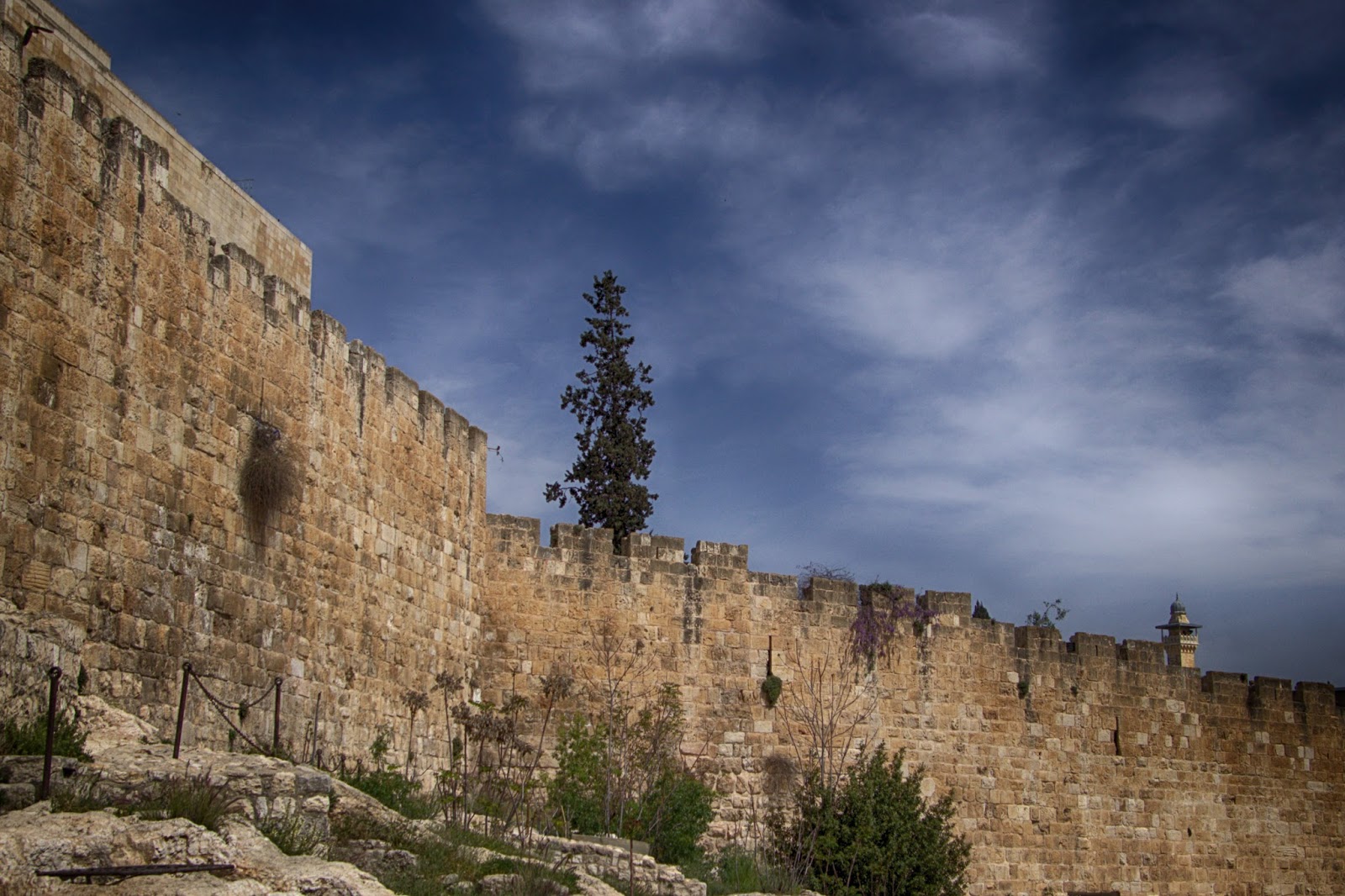 | Looking down the wall towards the Mount of Olives |